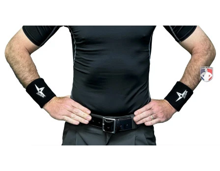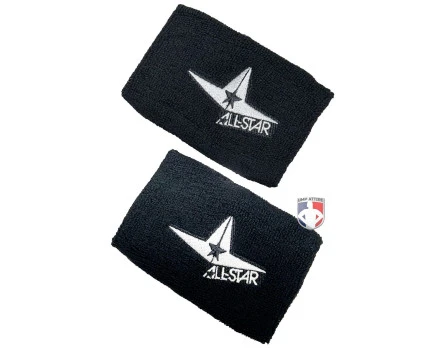 Comfortable, sweat-absorbing, black terry cotton wrist bands for umpires with an embroidered All-Star logo.