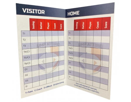 The Mound Visit Tracker is a bi-fold card with “Home” and “Visitor” side-by-side with plenty of space for writing “Game Notes” on the back.